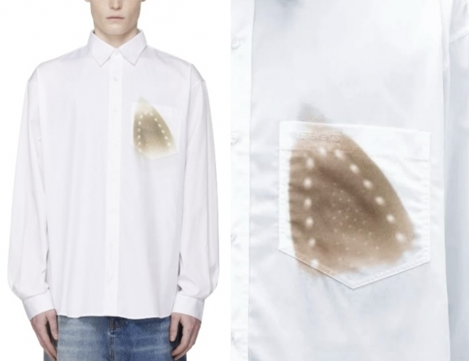 23일(현지시간) NDTV 등 외신에 따르면 이 제품은 베트멍이 올봄 출시한 ‘화이트 아이로닝 번 그래픽 셔츠’다. 면 100% 소재의 흰색 셔츠 왼쪽 가슴 주머니 위에 다리미 탄 자국을 본뜬 프린트가 들어간 것이 특징이다. 판매 가격은 1030달러(약 150만 원)로, XS 사이즈와 XL 사이즈가 이미 품절된 상태다.