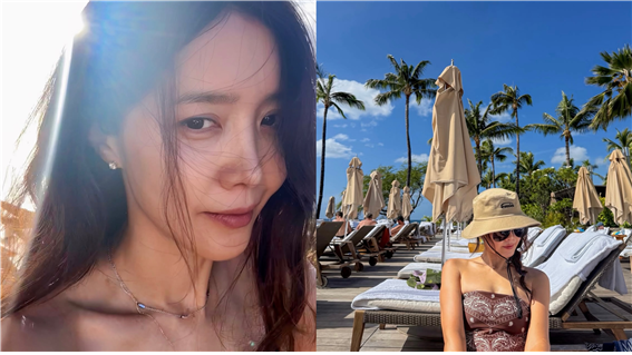 또 선글라스와 모자를 매치해 뜨거운 태양이 내리쬐는 쾌청한 하늘 아래에서 편안하면서도 특유의 세련된 분위기를 풍긴다. 나이를 가늠하기 어려운 동안 비주얼과 꾸준한 자기관리로 다져진 몸매는 감탄을 자아냈다.
