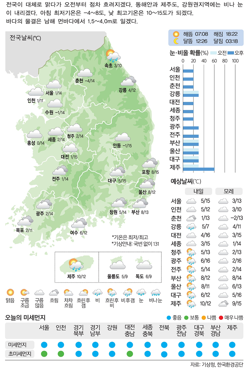 [26일의 날씨] 포근한 오후… 한결 가벼워진 옷차림