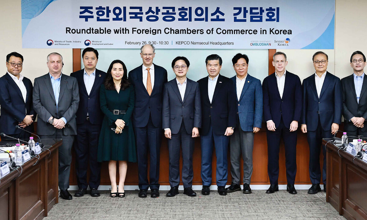 산업통상부와 고용노동부는 26일 한국전력 남서울본부에서 미국·유럽·일본 등 7개 주한외국상공회의소 회장단과 간담회를 열었다. 간담회는 내달 10일 시행되는 노란봉투법 시행과 관련 한국에 투자한 외국기업들의 의견을 청취하기 위해 마련됐다.