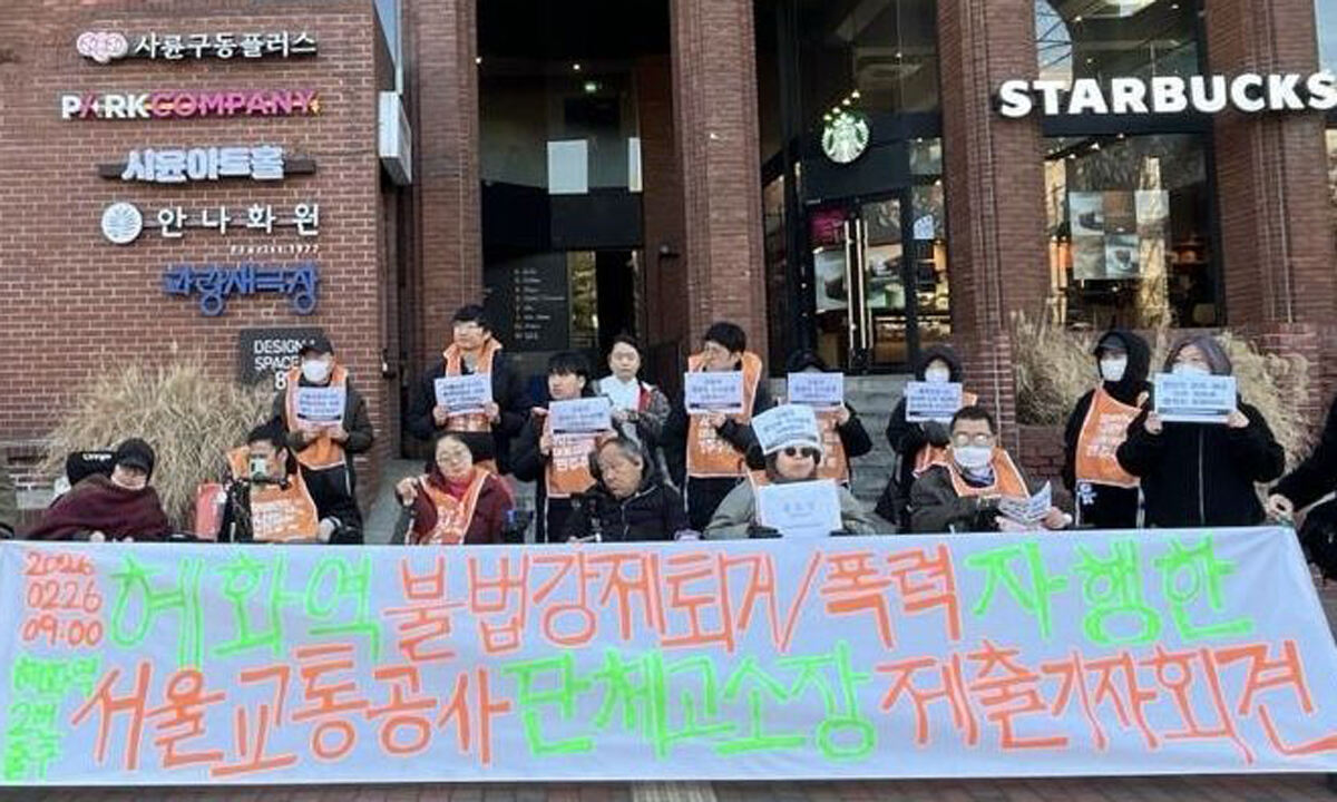 전국장애인차별철폐연대가 서울교통공사 관계자와 지하철 보안관들이 시위 중인 활동가들을 강제로 퇴거시키는 등 물리력을 행사했다며 단체 고소했다.