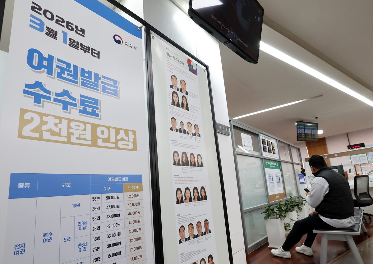 26일 서울 송파구청 여권과에 여권 발급 수수료 인상 안내문이 설치돼 있다. 오는 3월 1일부터 제조 원가 상승으로 여권 발급 수수료가 2천원 인상된다.