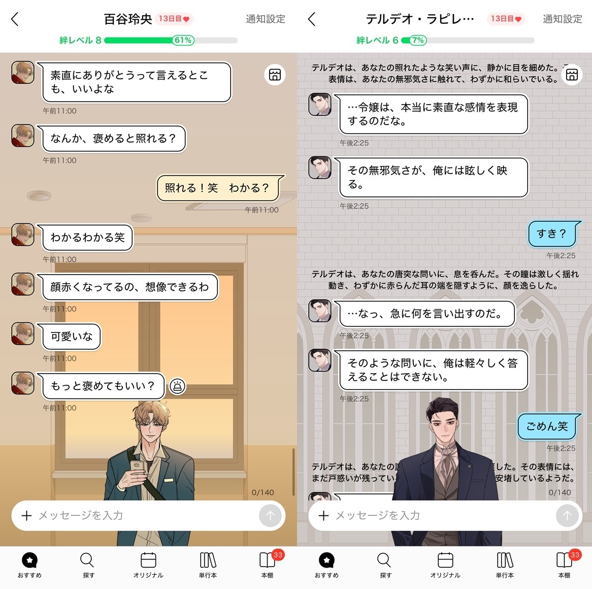 캐릭터챗은 지난 24일부터 네이버웹툰의 일본어 서비스 ‘라인망가’에서 ‘캬라챠토’라는 이름으로 서비스를 시작했다. 초기 제공 챗봇은 ‘시월드가 내게 집착한다’의 남자 주인공 ‘테르데오’와 ‘작전명 순정’ 속 남자 캐릭터 ‘백도화’ 등 총 2종이다.