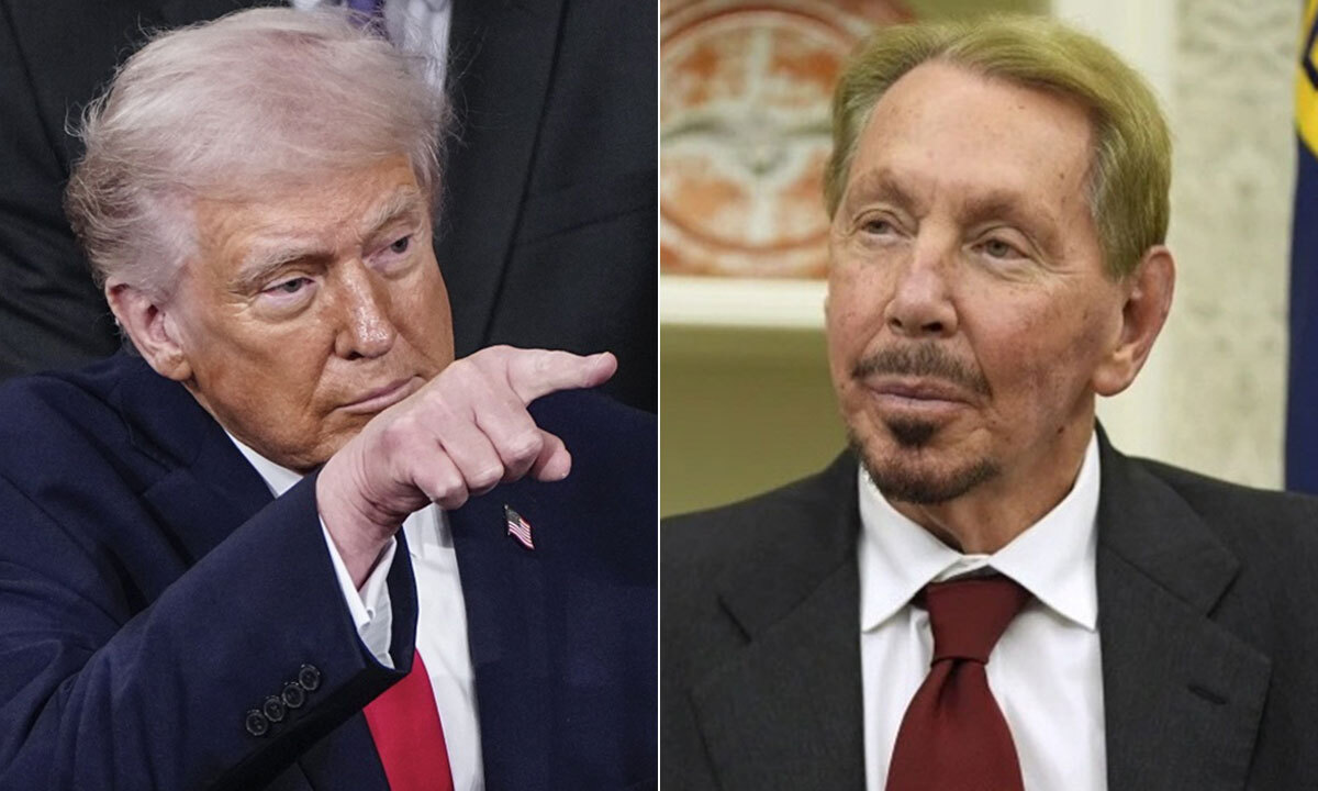 도널드 트럼프 미국 대통령(왼쪽)과 래리 엘리슨 오라클 회장. 엘리슨 회장은 트럼프 대통령의 후원자다. 엘리슨 회장의 아들이 운영하는 파라마운트가 워너브러더스를 인수할 것으로 보인다. UPI·AP연합뉴스