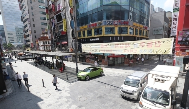 28일 오전 서울 종로구 번화가에서 부탄가스 통에 불을 붙이려 한 30대 남성이 경찰에 붙잡혔다.