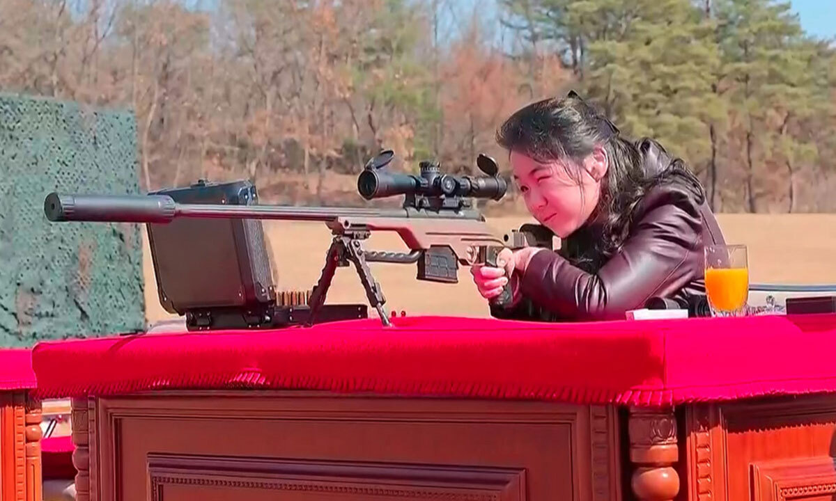 김정은 북한 국무위원장의 딸 주애가 김 위원장이 주요 간부들에게 선물한 신형 저격용 소총으로 지난달 27일 사격연습을 하고 있다.