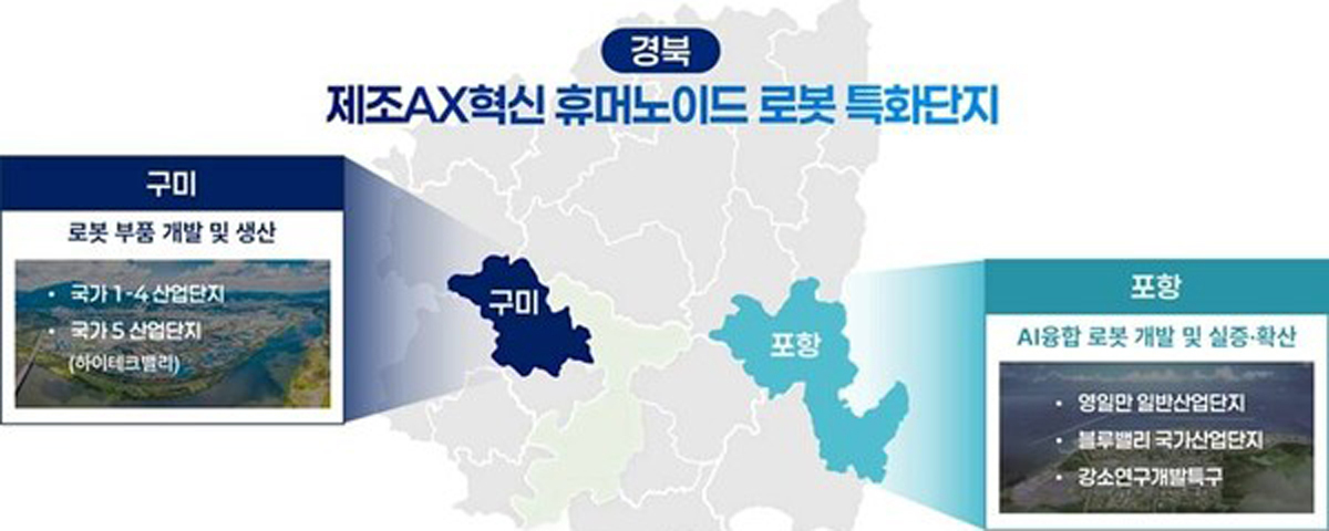 전자·부품 산업이 집적된 구미와 철강·이차전지 등 고위험·고정밀 제조 산업이 밀집한 포항을 연계해 부품–완제품–AI 실증으로 이어지는 로봇 산업 전주기 가치사슬을 구축한다는 전략이다.
