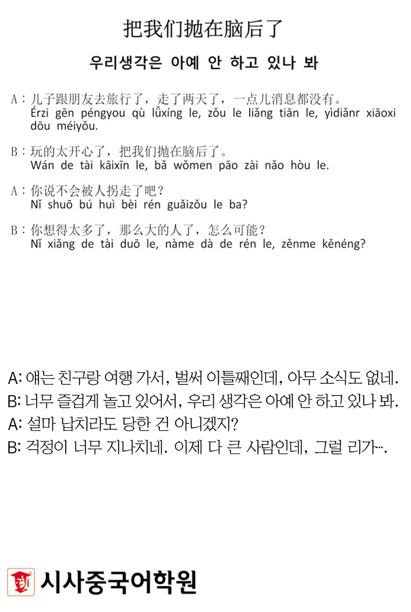 [시사중국어학원의 리얼 중국어 회화] 우리생각은 아예 안 하고 있나 봐.