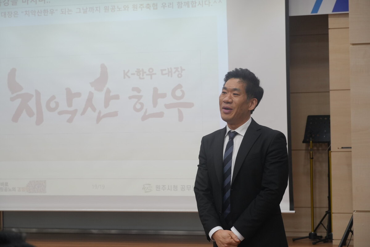 문 위원장은 “2022년부터 이어온 인연으로 원주축협 임직원 대상으로 특강을 진행하게 돼 기쁘다”며 “앞으로도 원주를 위해 시 노조와 원주축협이 함께 하길 기대한다”고 화답했다.