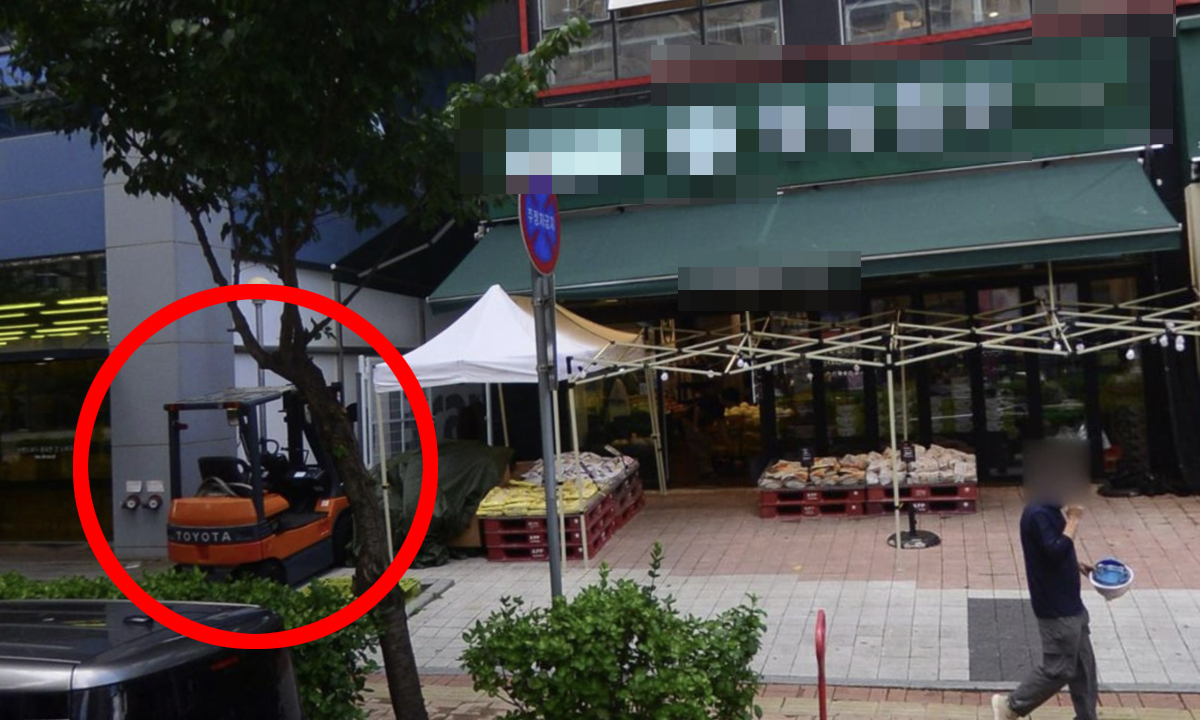 특히 지난 9월 거리뷰 캡처 화면에서도 지게차가 인도 위로 올라가 있는 모습이 포착됐다.