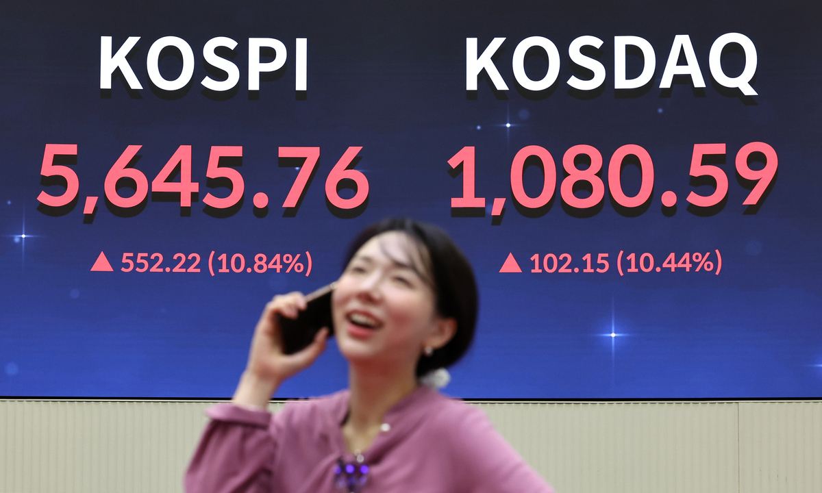5일 오전 10시20분 기준 코스피는 전장보다 11% 넘게 오른 5670대에서 거래 중이다. 코스닥 역시 12% 이상 급등하며 1090대를 웃돌고 있다. 수급별로는 코스피 시장에서 외국인과 개인이 각각 7100억원, 6000억원어치를 순매수 중인 반면 기관은 1조2700억원어치를 대거 팔아치우고 있다. 삼성전자와 SK하이닉스 등 시가총액 상위 종목들도 일제히 14%가량 뛰며 지수 상승을 견인 중이다.