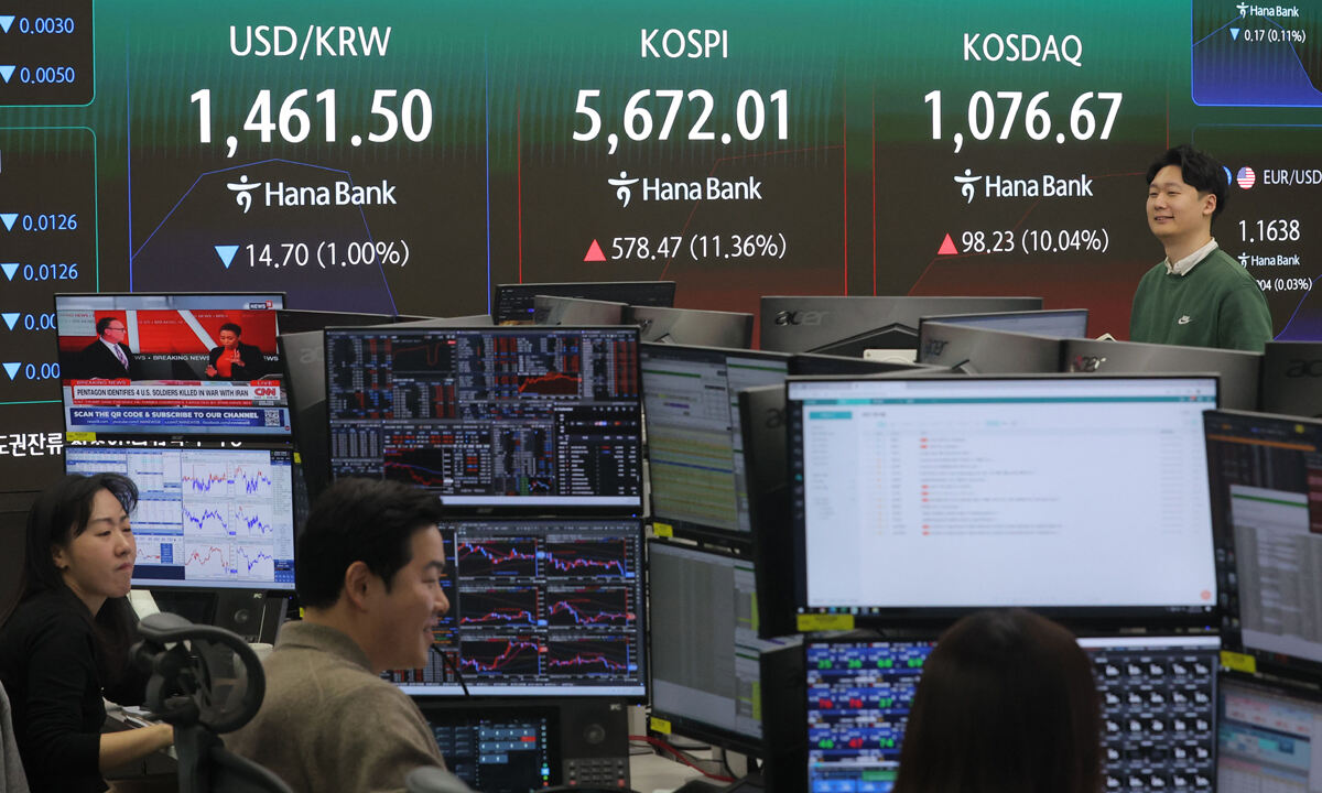 전날 야간 거래에서 1500원 넘게 치솟은 환율은 하루만에 진정되는 분위기다. 이날 야간 거래 도중 미국 뉴욕타임스(NYT)가 공습 다음날 이란 정보당국이 제3국을 통해 미 중앙정보국(CIA)에 분쟁 종식을 위한 협상을 제안했다고 보도하고 미국의 민간 고용도 시장 전망치를 웃돌면서 증시 상승에 힘이 실렸다. 이에 미국 뉴욕 증시에서 다우존스30 산업평균지수는 0.49%, 나스닥 종합지수는1.29% 각각 상승 마감했다. 스탠더드앤드푸어스(S&P) 500지수는 0.78% 내렸다. 서부텍사스산원유(WTI) 선물은 74.66달러로, 0.1% 오르며 보합세였다.