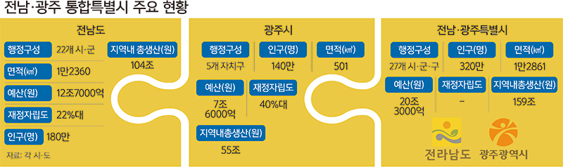 전남·광주 행정통합이 가시권에 들어오면서 통합특별시 출범을 위한 실무 준비가 본격화되고 있다. 겉으로는 ‘통합’이라는 정치적 선언이 앞서고 있지만 실제 출범까지는 조직·인사·법규·행정시스템 등 촘촘한 사전 정비가 선행돼야 한다는 점에서 과제가 적지 않다. 행정통합으로 인한 비용만 적게는 2000억원에서 많게는 3000억원까지 소요될 것으로 추산된다.