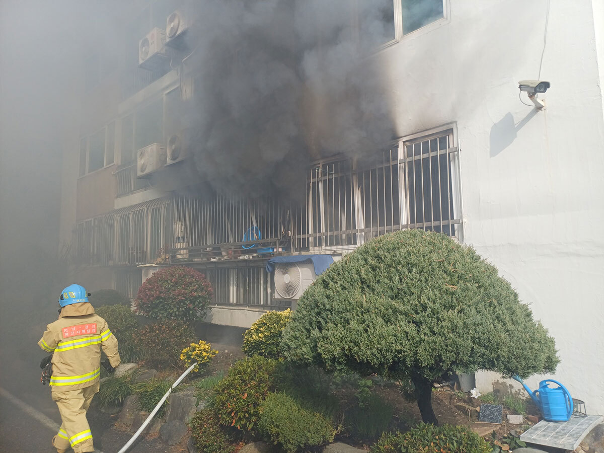 전남소방본부에 따르면 이날 오전 9시52분쯤 전남 장성군 장성읍 한 아파트 1층에서 불이 났다.