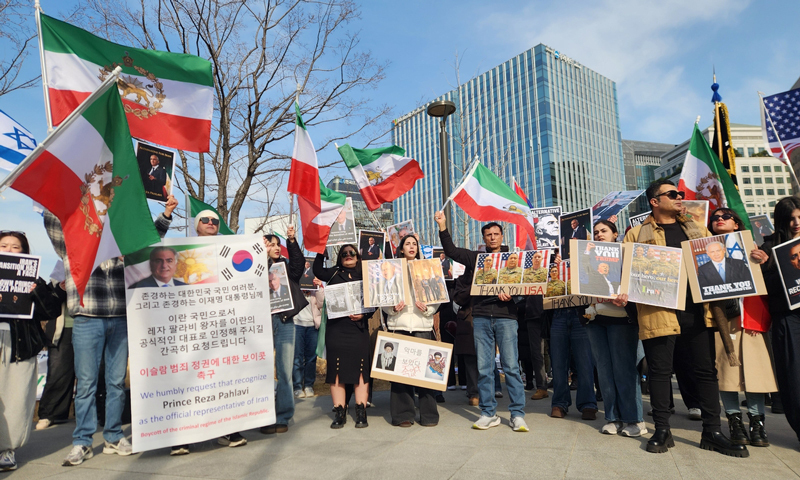 "이란 독재 끝내자", "이란의 자유를 되찾자" 등 구호를 외친 이들은 이란의 반격으로 쿠웨이트에서 전사한 미군 장병 6명의 사진에 LED 촛불이나 조화를 놓았다. 도널드 트럼프 미 대통령 인형 탈을 쓴 참가자에게 꽃을 전달하는 퍼포먼스를 벌이기도 했다.