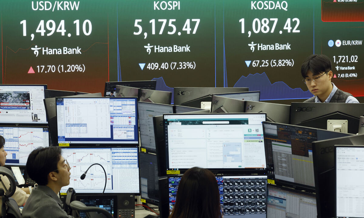 이란 사태 장기화 우려로 국제유가가 배럴당 100달러 선을 돌파한 가운데 코스피가 9일 장중 8% 넘게 폭락하면서 거래를 일시 중단시키는 '서킷브레이커'가 발동됐다.