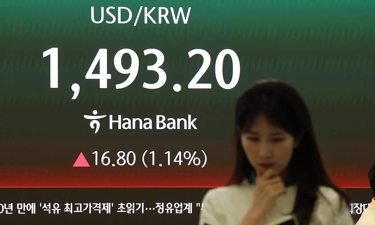 이날 서울 외환시장에서 미국 달러화 대비 원화 환율의 주간 거래 종가(오후 3시30분 기준)는 전 거래일보다 19.1원 오른 1495.5원으로 집계됐다. 이는 글로벌 금융위기 때인 지난 2009년 3월 12일(종가 1496.5원) 이후 최고가다.