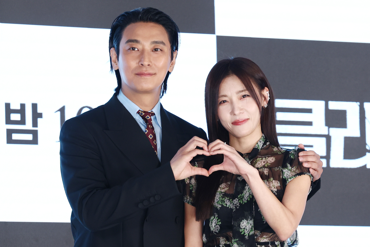 배우 주지훈(사진 왼쪽)과 하지원이 10일 서울 신도림 더 세인트 웨딩에서 열린 ENA 월화 드라마 ‘클라이맥스’의 제작발표회에 참석해 포즈를 취하고 있다.