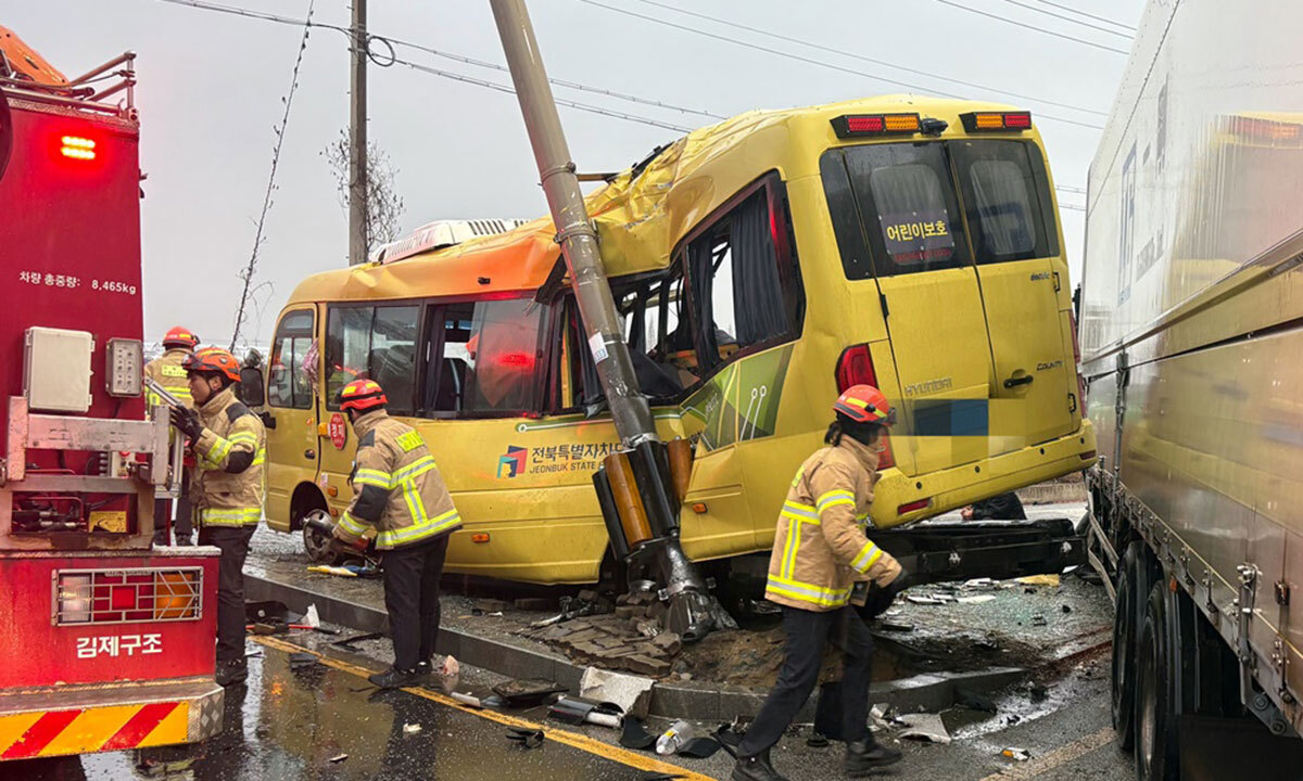 A씨는 지난해 12월 23일 오후 4시 30분쯤 전북 김제시 백산면 한 교차로에서 25t 윙바디 화물트럭을 몰다가 신호를 위반해 초등학교 통학버스를 들이받아 학생과 학교 안전지도사 등 13명을 다치게 한 혐의로 구속기소 됐다.