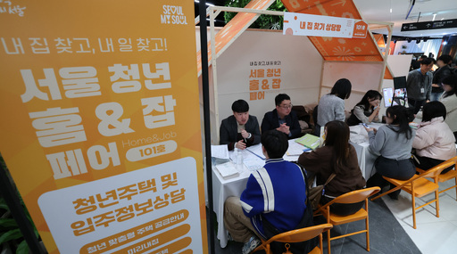 10일 서울 중구 서울시청 지하 서울갤러리에서 열린 ‘서울 청년 홈&잡 페어’에서 청년들이 내 집 마련을 위한 상담을 하고 있다. 오세훈 서울시장은 이날 청년들의 주거 안정과 자산 형성을 돕기 위해 2030년까지 총 7만4000호의 청년주택을 공급하는 내용의 종합대책을 발표했다.