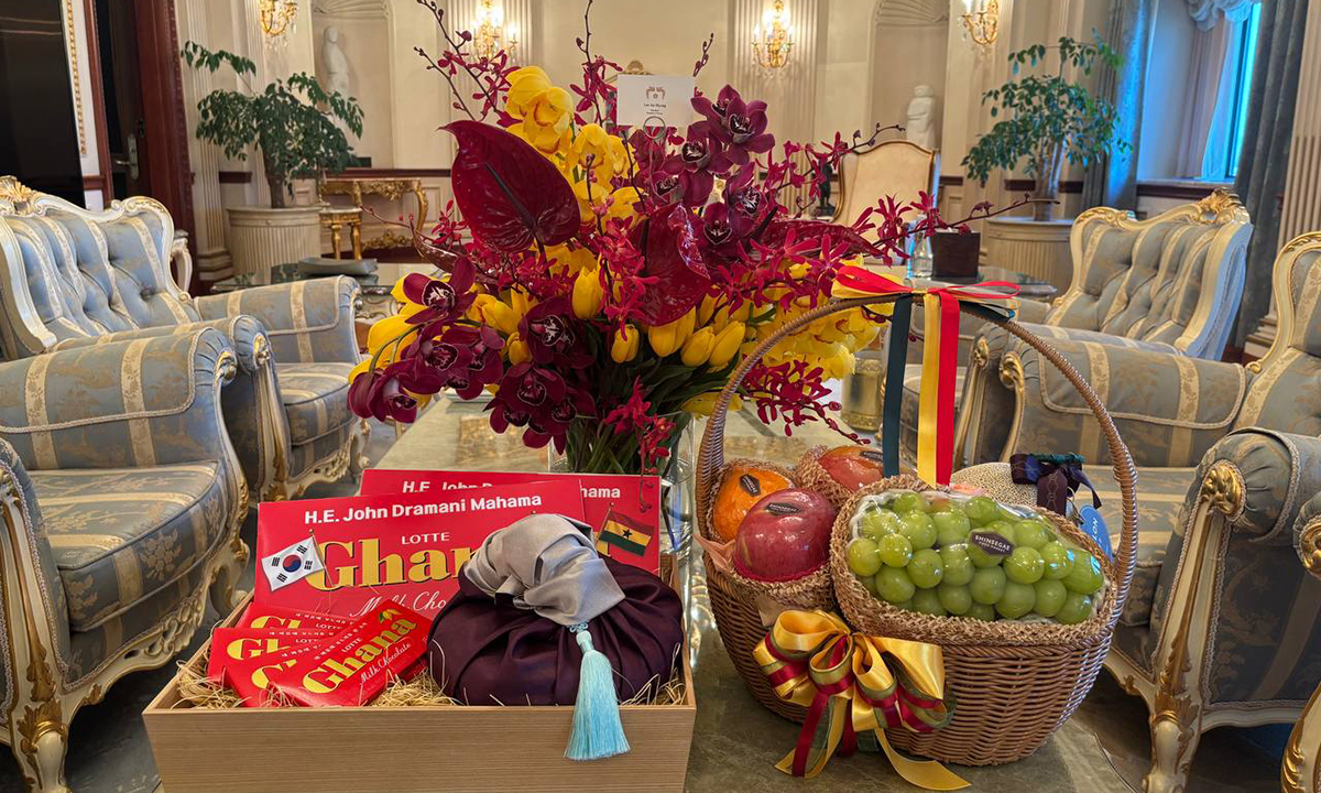 강유정 청와대 대변인은 이날 서면 브리핑에서 “가나는 우리에게 가나초콜릿이라는 제품으로 익숙한 나라로, 해당 제품은 카카오 원두의 80% 이상을 가나산으로 사용한다”며 이같이 밝혔다. 대한민국과 가나 양국의 국기와 마하마 대통령의 이름이 표지에 새겨진 특별 제작 초콜릿은 가나 대통령의 숙소에 환영 선물로 배치됐다. 가나는 코코아 생산량 세계 2위 국가다.