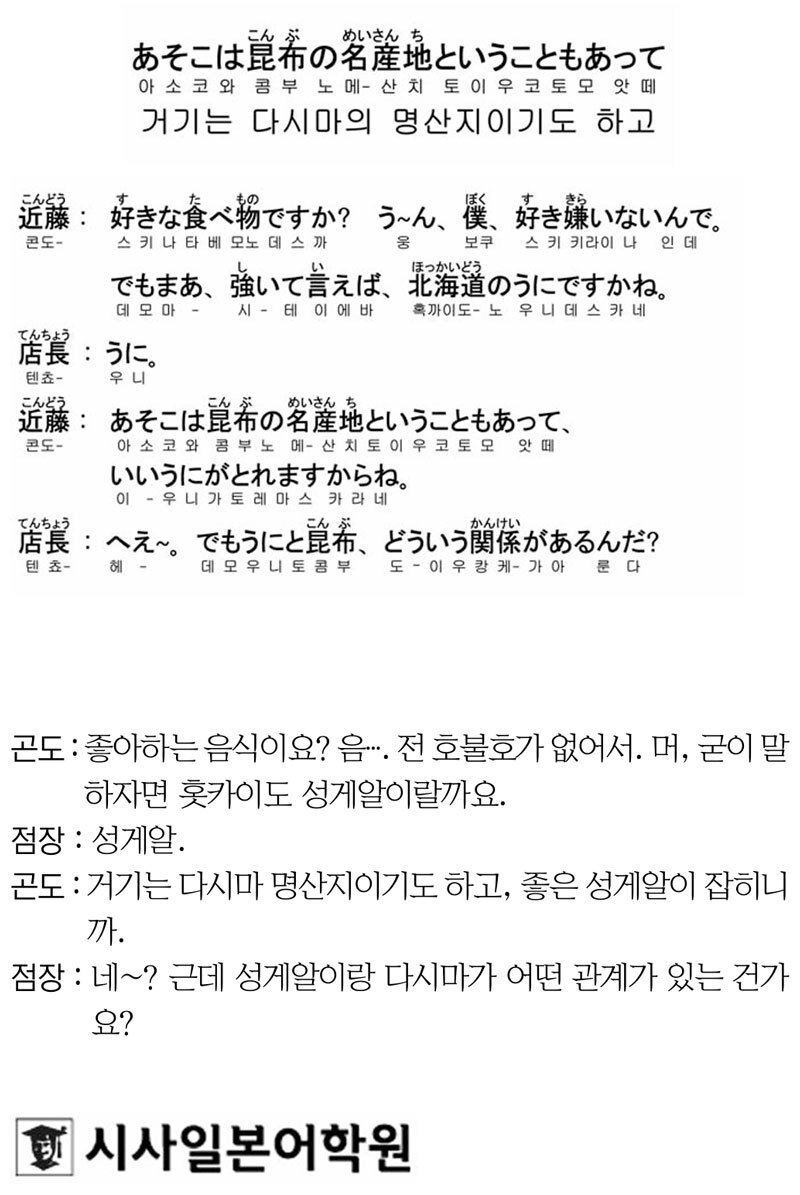 [시사일본어학원의 초단기 일본어 회화] 거기는 다시마의 명산지이기도 하고