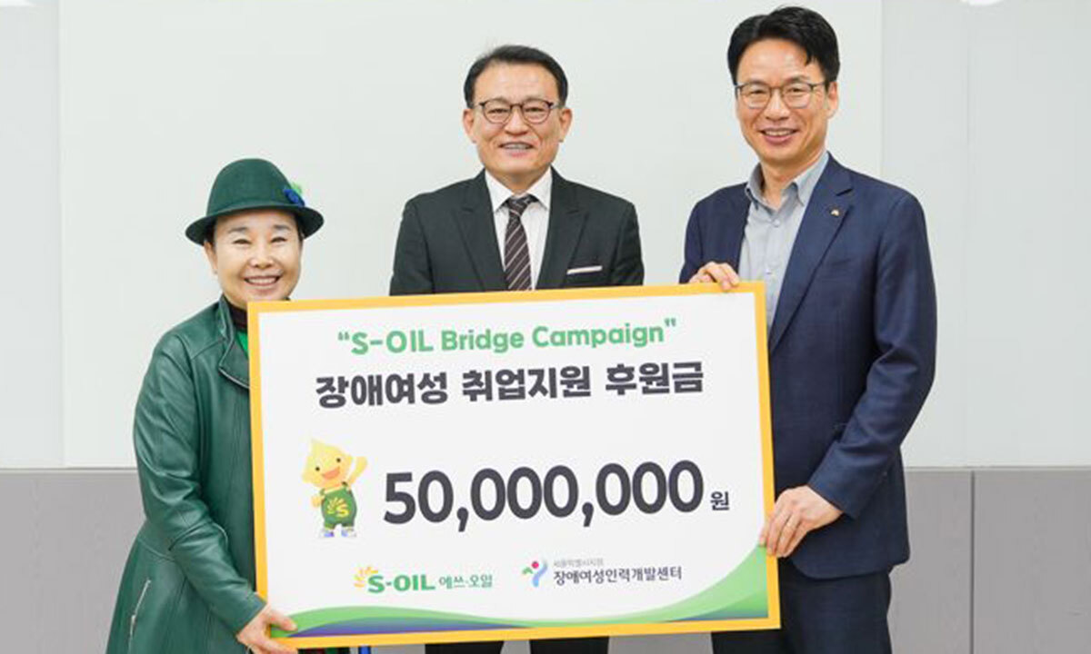 에쓰오일은 11일 서울 강서구 장애여성인력개발센터에 장애 여성의 취업과 자립을 돕기 위한 ‘에쓰오일 브릿지 캠페인’ 후원금 5000만원 전달식(사진)을 했다고 밝혔다. 장애여성인력개발센터는 장애 여성의 경제활동 참여 확대를 위해 직업교육과 취업 지원 프로그램을 운영하는 전문 기관이다. 이번 후원금은 장애 여성의 직업교육 프로그램 운영과 자격 취득 지원 등 안정적인 사회 진출과 직업 유지를 돕는 데 사용된다. 에쓰오일은 “장애 여성을 비롯한 사회적 취약계층의 자립과 경제활동 참여를 지원하고 지역사회를 위한 나눔 활동을 지속적으로 실천하겠다”고 밝혔다.