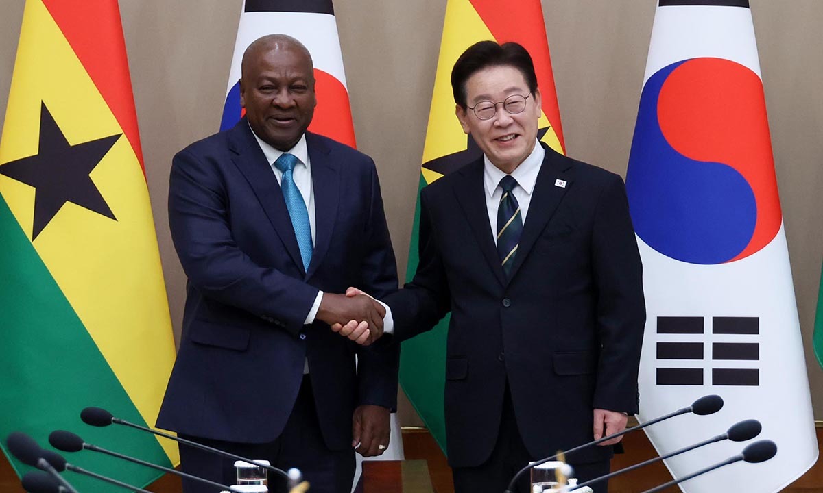 이재명 대통령은 11일 “한국과 가나는 식민 지배, 독재라는 굴곡진 역사를 이겨내고 민주주의의 모범을 이룩했다는 점에서 참으로 많이 닮아 있다”며 “호혜적인 협력관계가 더욱 발전하게 되기를 기대한다”고 밝혔다. 실무 방문 형식으로 한국을 찾은 존 드라마니 마하마 가나 대통령과 정상회담을 가진 이 대통령은 “가나는 대한민국의 아프리카 시장 진출을 잇는 든든한 교두보”라며 교역부터 해양 안보, 기후변화 대응 등 다양한 분야에서의 실질 협력 방안을 논의했다.