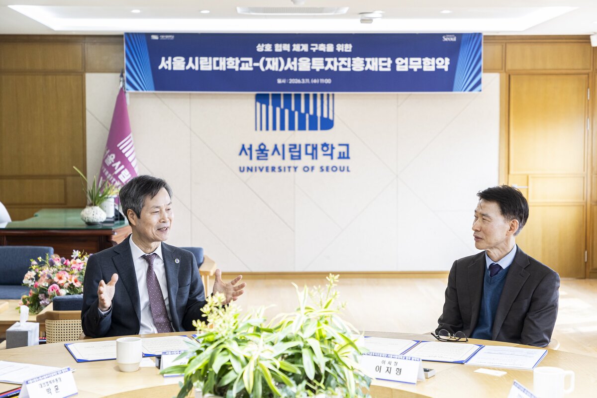 서울시립대는 지난 11일 대학본부 총장실에서 서울투자진흥재단과 업무협약을 맺었다고 12일 밝혔다. 이번 협약은 양 기관이 상호 존중과 신뢰를 바탕으로 외국인투자기업 및 글로벌 기업의 서울 진출을 지원하고, 인공지능(AI) 등 서울시 전략산업 분야의 기업 유치, 인재 양성, 연구개발(R&D) 협력을 통해 지역 경제 활성화와 산업 경쟁력 강화를 도모하기 위해 마련됐다.