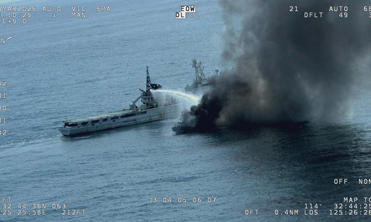 해경은 오전 10시 50분께 사고 해역에 도착해 진화를 시도했지만, 강화섬유플라스틱(FRP) 재질 선체의 불길이 접히지 않아 구조를 위한 내부 진입이 어려웠다고 전했다.