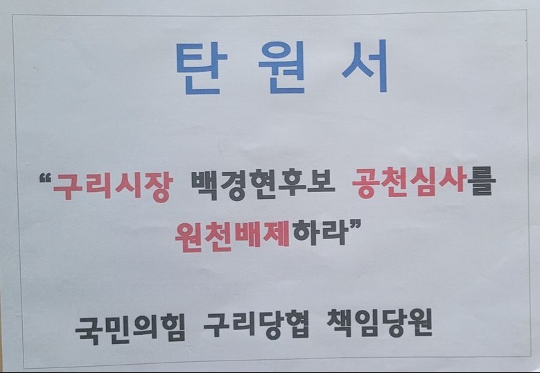 이번 탄원서 제출은 국민의힘 경기도당의 구리시장 후보 면접 심사를 단 이틀 앞두고 이뤄졌다.
