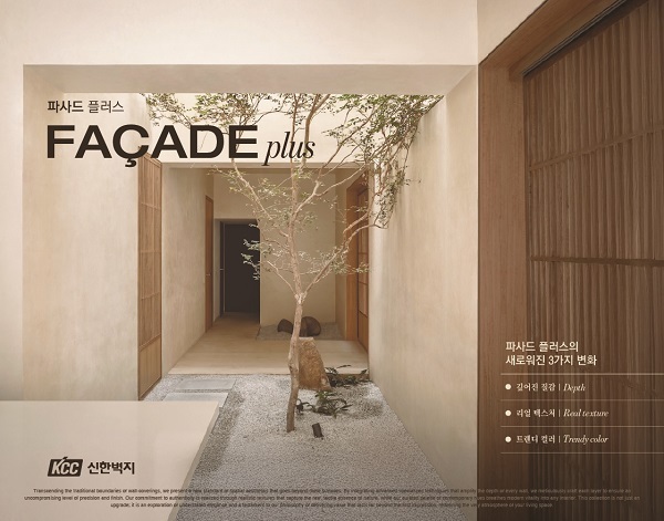 친환경 벽지 브랜드 KCC신한벽지가 하이엔드 벽지 라인 ‘파사드 플러스(FAÇADE plus)’를 새롭게 출시했다. 이번 신제품은 기존 ‘파사드’ 컬렉션의 디자인 정체성을 유지하면서 질감 표현과 디테일을 강화해 프리미엄 인테리어 시장을 겨냥한 제품이다.