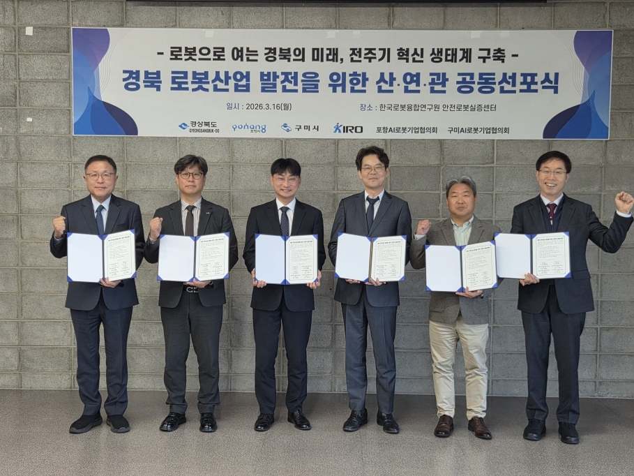 시는 16일 안전로봇실증센터에서 ‘경북 로봇산업 발전 산·연·관 공동선포식’을 개최했다.
