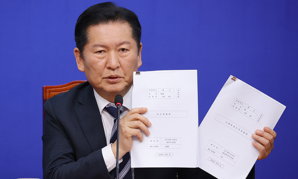 정 대표는 “혹시 모를 공소청 검사의 수사개입 다리를 끊었다”며 “검사의 특권적 지위와 신분 보장도 내려놓게 했다”고 강조했다. 이어 “수사권과 기소권의 완전한 분리를 통해 검찰을 다른 행정 공무원과 동일한 원칙 아래 두는 토대를 마련했다”고 말했다.