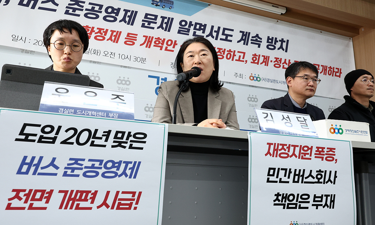 경실련은 △재정 운용의 투명성 확보 △교통전환과 교통비 부담 완화 위한 서비스 기준 마련 △정비∙안전 관련 감사 강화 △다양한 운영체계 도입 등을 제시하면서 “버스는 시민이 요금으로 부담하고, 세금으로 다시 떠받치는 공공서비스다. 운영 역시 공공서비스답게 투명해야 한다”고 주장했다.