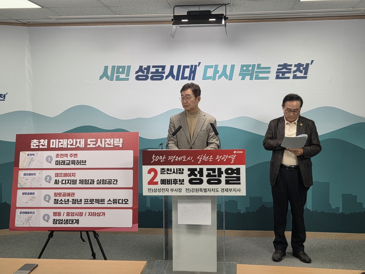 정광열 춘천시장 예비후보가 18일 춘천을 단순한 관광 중심 도시를 넘어, 아이들과 청년이 세계 수준의 기술과 문제 해결 역량을 배우고 도전할 수 있는 미래인재 도시로 전환하겠다는 구상을 밝혔다.
