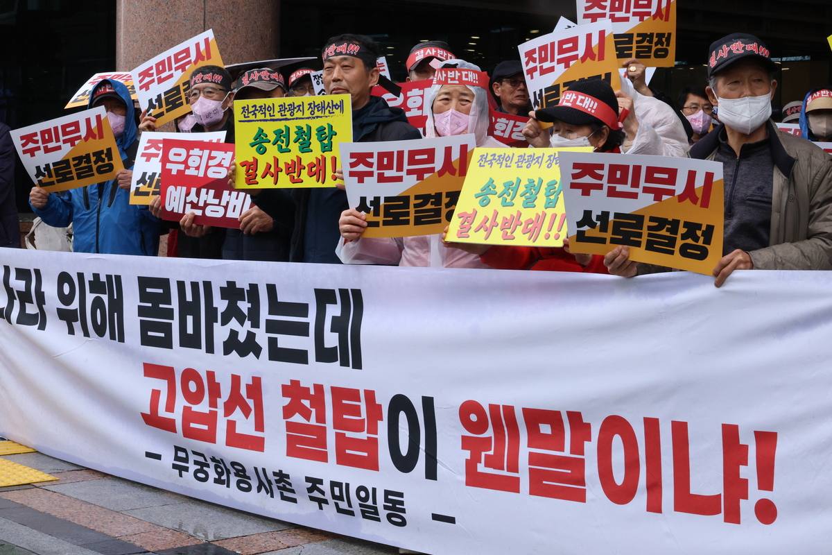 대책위는 “신계룡∼북천안 송전선로가 지나는 곳은 대전 유성구와 서구 등 도심”이라며 “정부와 한국전력은 주민의 생존권을 보장하라”라고 주장했다.