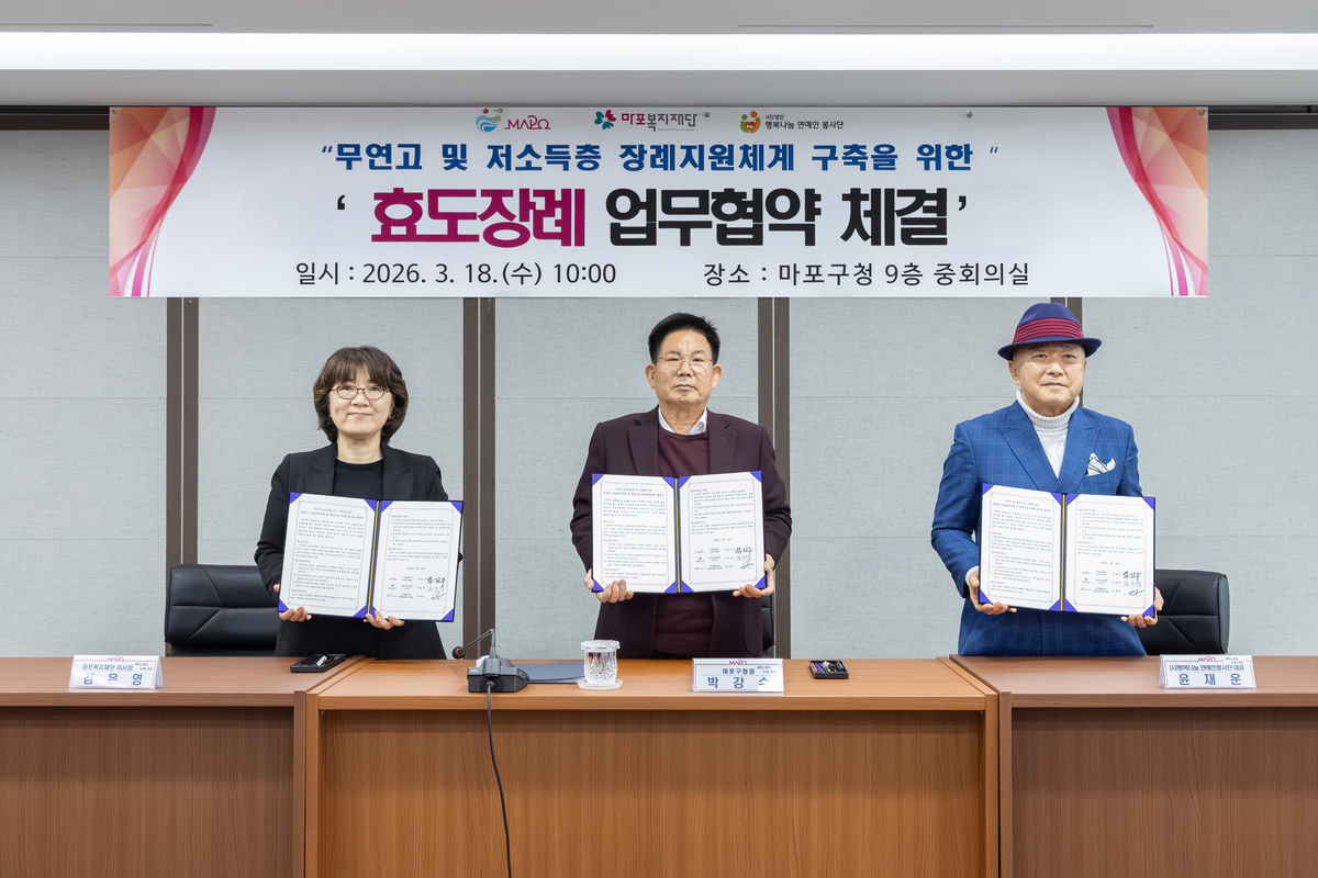 박강수 마포구청장은 “효도장례라는 이름에는 우리 사회가 고인의 마지막 가족이 되어 품격을 끝까지 지키겠다는 뜻이 담겨있다”며 “외로운 죽음이 없는 따뜻한 마포를 만들겠다”고 밝혔다.