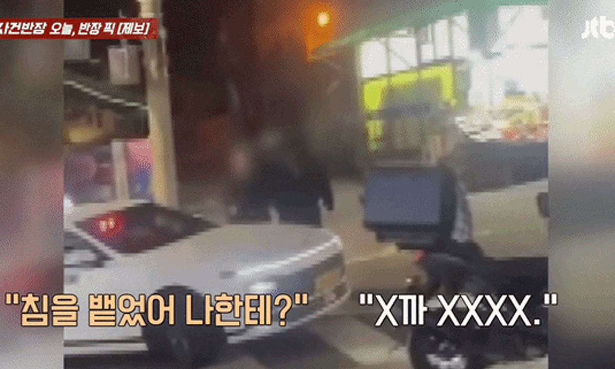 지속된 갈등에 택시 기사는 차에서 내렸다. 그러자 오토바이 운전자는 욕설, 폭언을 이어가면서 택시 기사를 위협했다. 오토바이 운전자는 심지어 택시 기사를 향해 침까지 뱉었다. 택시 기사가 "침을 뱉었어, 나한테?"라고 항의하자 오토바이 운전자는 욕설을 내뱉으며 격앙된 모습을 보였다.