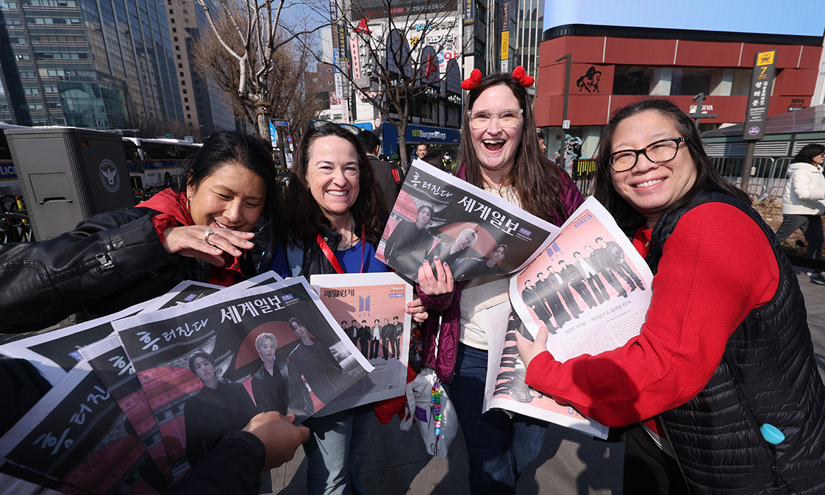 방탄소년단(BTS) 컴백 공연을 앞둔 21일 오전 8시쯤 서울 종로구 의정부터에는 바리케이드를 따라 ‘아미’(BTS 팬덤) 30여명이 나란히 서 있었다. 티켓을 구하지 못해 광화문광장으로 들어갈 수 없는 만큼 메인 무대를 바로 옆에서 볼 수 있는 ‘명당’을 찾으려 이른 아침부터 발품을 판 것이다.