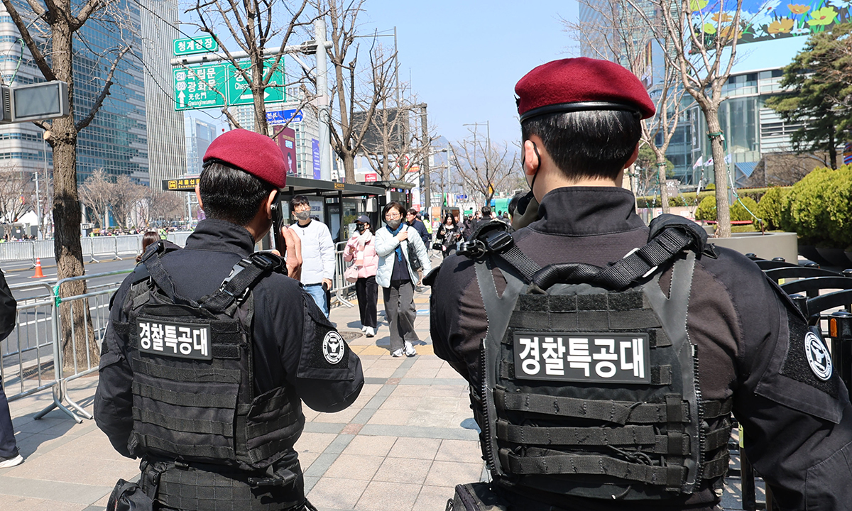 현재 광화문 광장은 31개 게이트를 통해서만 드나들 수 있다. 금속탐지기를 설치해 위험물 등 반입을 차단하기 위해서다. 게이트 내부엔 경찰특공대도 배치됐다.