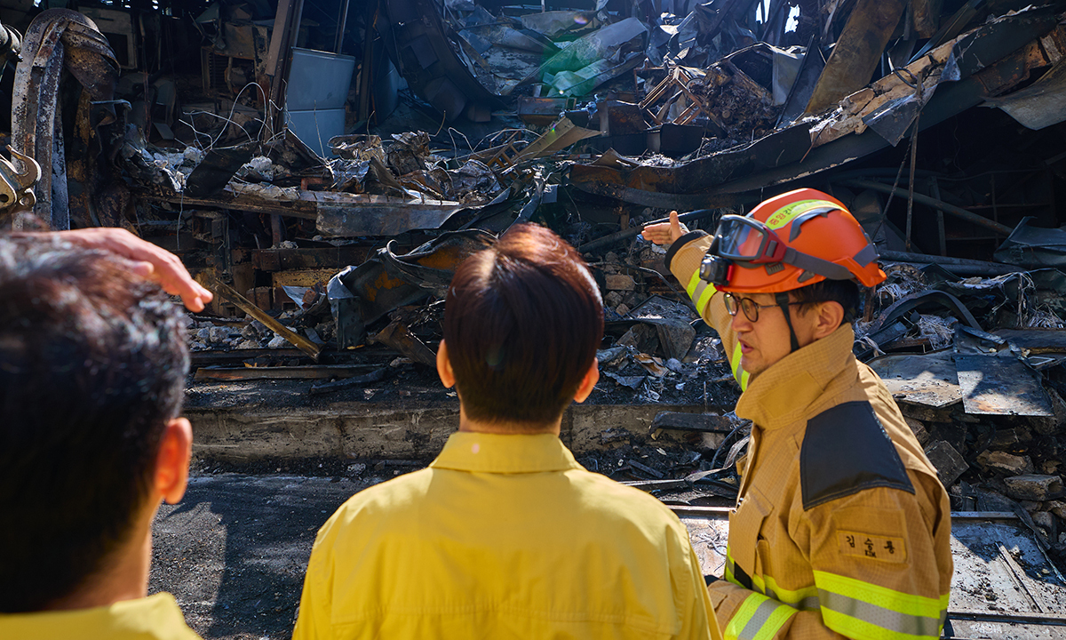 이 대통령은 이날 오후 3시쯤 강훈식 비서실장과 함께 현장에 도착해 소방 당국으로부터 시간대별 조치 상황과 사상자 등 인명피해 현황 등을 보고받았다. 이 과정에서 발화 위치와 투입된 구조 인력의 규모, 실종자 수색 진행 상황 등을 구체적으로 묻기도 했다.