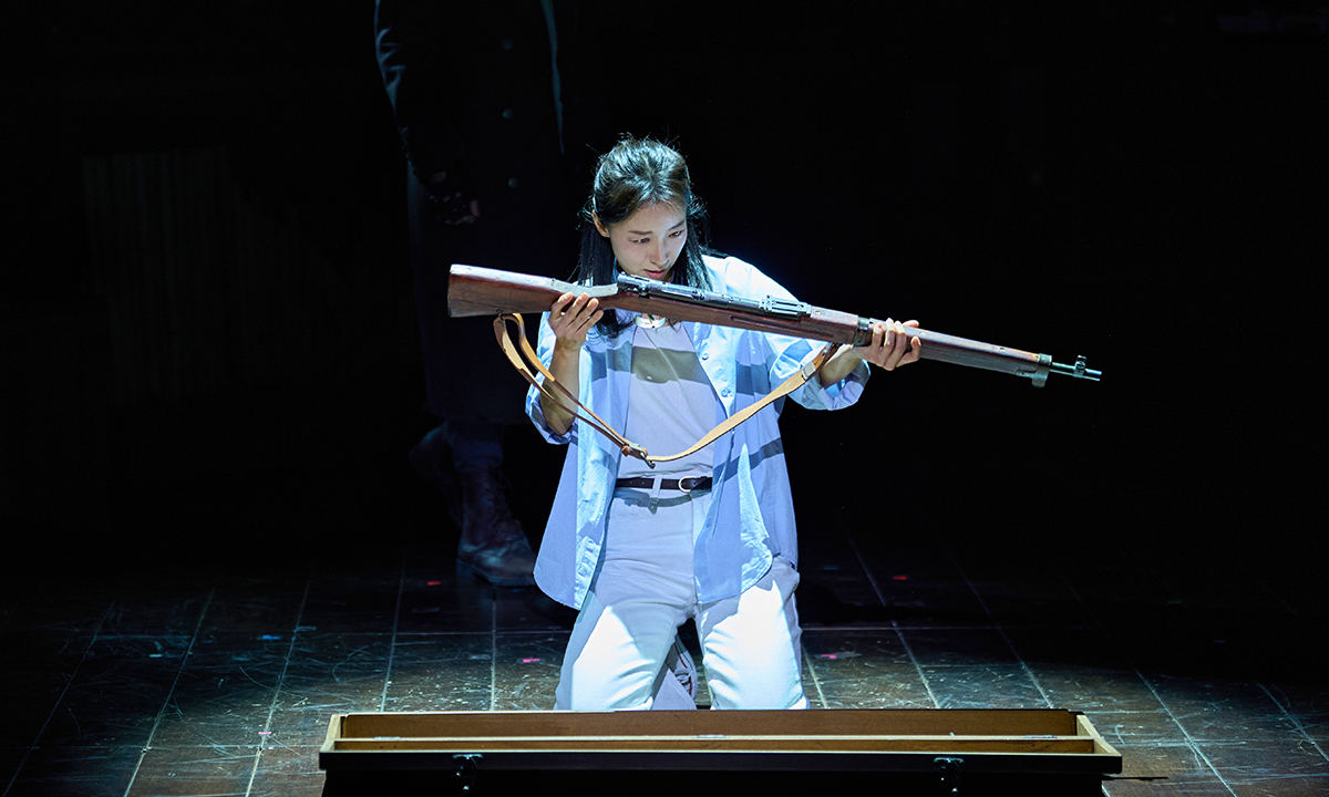 역사란 무엇인가, 기억이란 무엇인가, 이야기를 쓴다는 것은 무엇인가, 무기는 악기가 될 수 있는가. 여러 겹의 질문을 품은 ‘빵야’. 주인공이 계속 바뀌는 옴니버스 구조, 스타 캐스팅의 부재, 문학적인 대사 등 드라마 산업이 약점이라고 거부한 요소들이 연극에선 참신하게 빛난다. 편성에 실패한 드라마가 연극이 되어 살아남았듯, 총이 되어버린 나무와 쇠붙이가 악기를 꿈꾸는 이 이야기는 불가능한 꿈의 가치를 증명한다. 두산아트센터 연강홀에서 5월 24일까지.