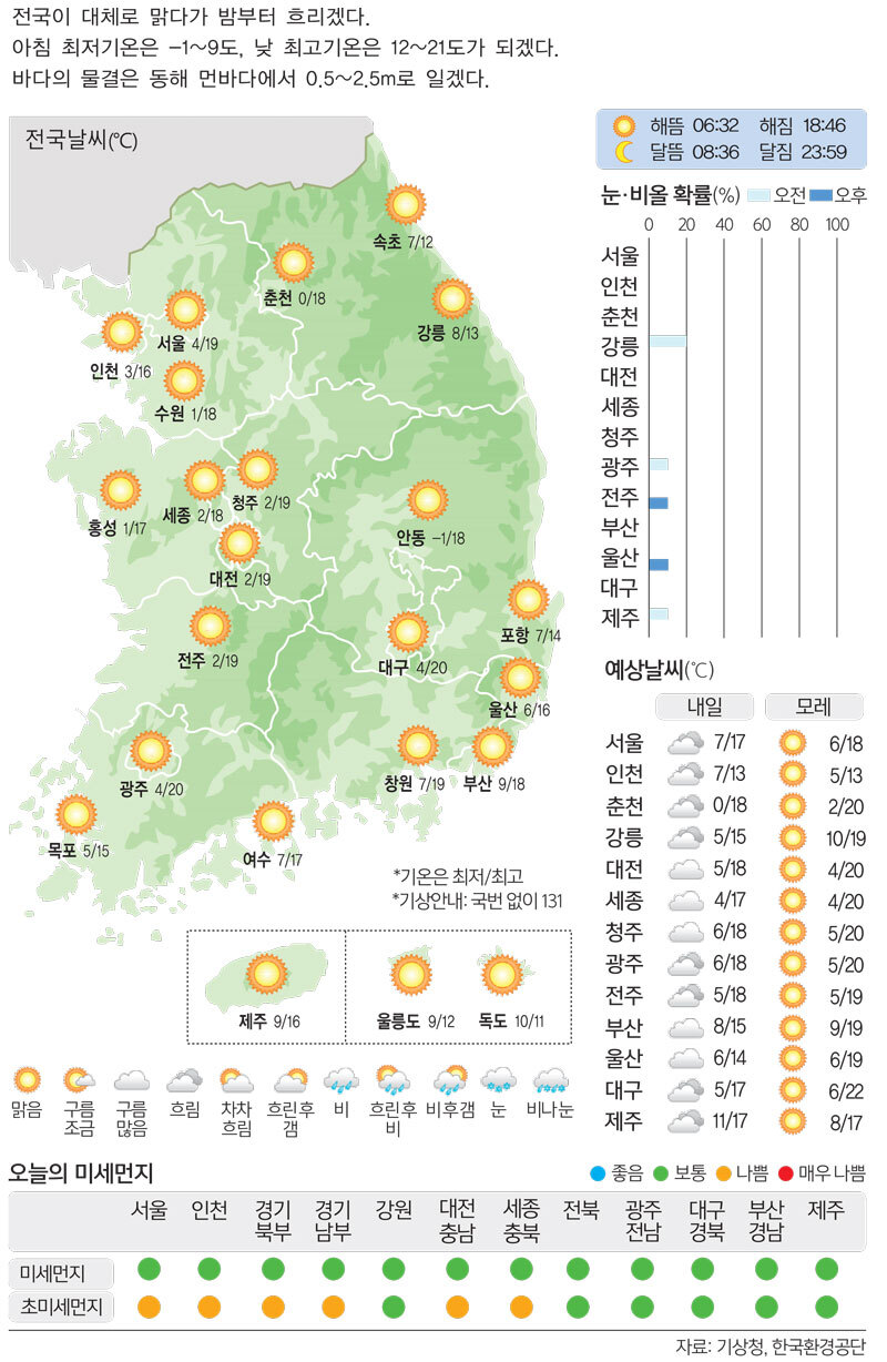 [23일의 날씨] 낮엔 가벼운 옷차림