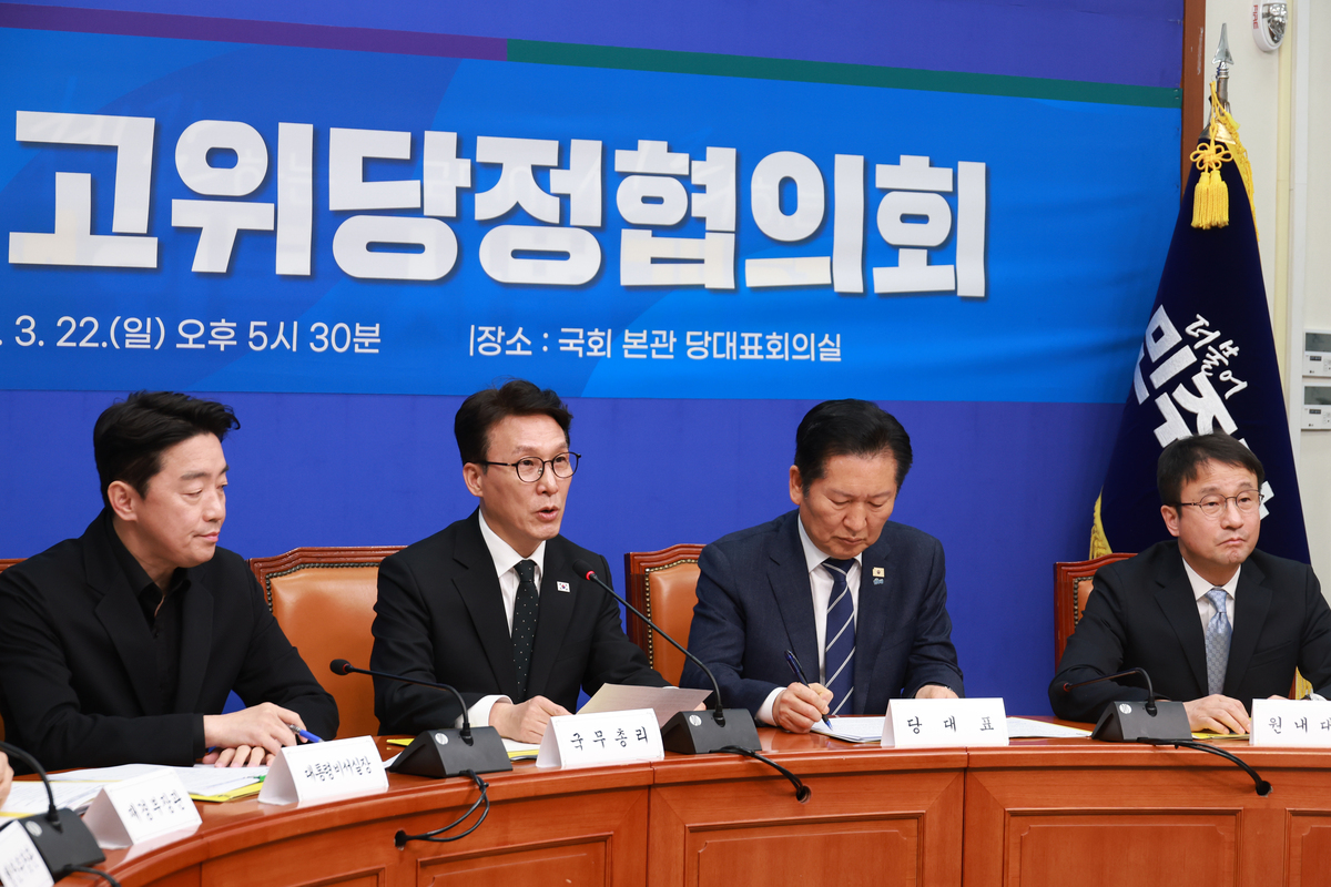 민주당과 정부, 청와대는 22일 국회에서 고위 당정협의회를 열고 추경안을 ‘당·정·청 원팀’ 기조로 처리하기로 뜻을 모았다. 김민석 국무총리는 “중동의 긴장이 에너지, 물류, 금융 통해 우리 경제 심장부까지 밀려왔다”며 “민생 방어와 경기 안정 위한 신속한 ‘방파제 추경’은 선택 아닌 필수”라고 강조했다.