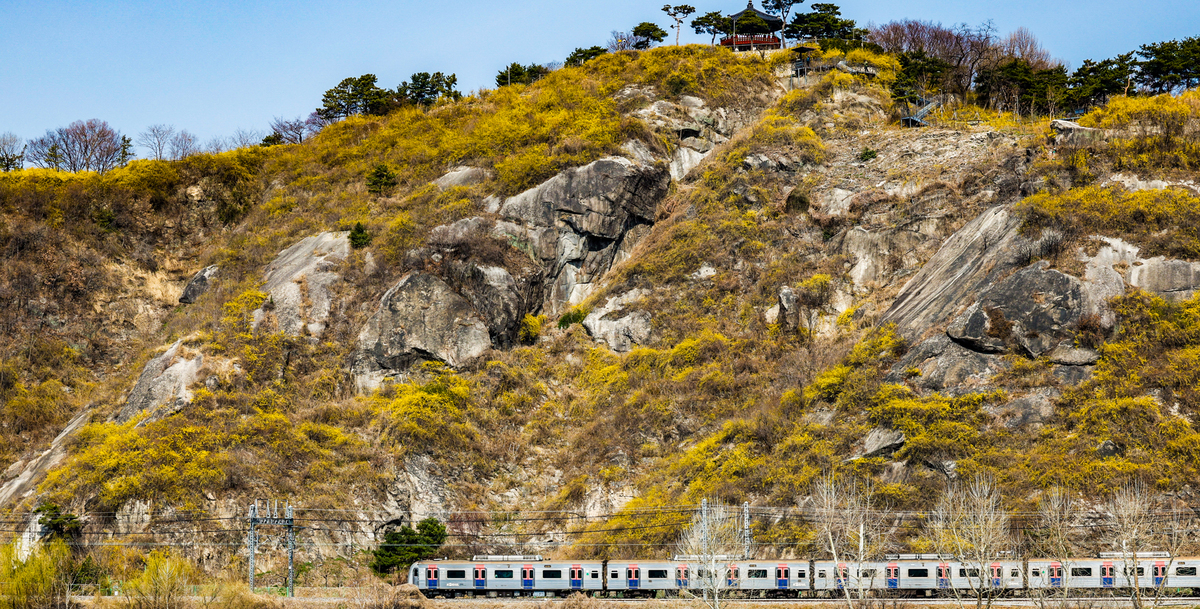 서울 낮 최고기온이 19도를 기록한 23일 서울 광진구 응봉산 일대에 개나리 꽃이 피어 있다. 기상청은 이날 중부내륙과 전북내륙, 경북권내륙을 중심으로 아침 기온이 0도 안팎이고, 낮과 밤의 기온차가 15~20도로 크겠으니 건강관리에 유의해야겠다고 예보했다.
