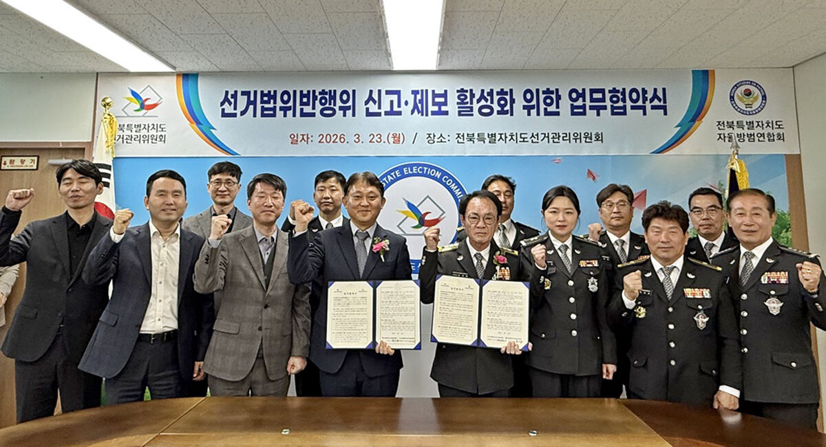 전북도선거관리위원회가 자율방범단체와 손잡고 선거법 위반행위 감시와 신고 활성화에 나섰다. 지역 밀착형 조직과의 협력을 통해 은밀한 불법 선거운동을 차단하고 공정한 선거 환경을 조성하기 위해서다.