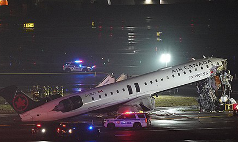 캐나다 지역 항공사인 재즈 항공이 운항하는 이 여객기는 충돌 사고로 머리 부분이 크게 파손됐으며, 기체 앞부분이 들린 채 멈춰섰다.