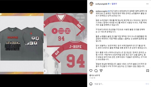 마지막으로 그는 "정말로 한심한 행위다. 불법 시청도 모자라 불법 굿즈까지 만들어 수익 구조로 삼는 건 있을 수 없는 일"이라며 "이제는 그만해야 한다. 다른 나라 콘텐츠를 '도둑질'하는 행위는 반드시 멈춰야 한다"고 했다.