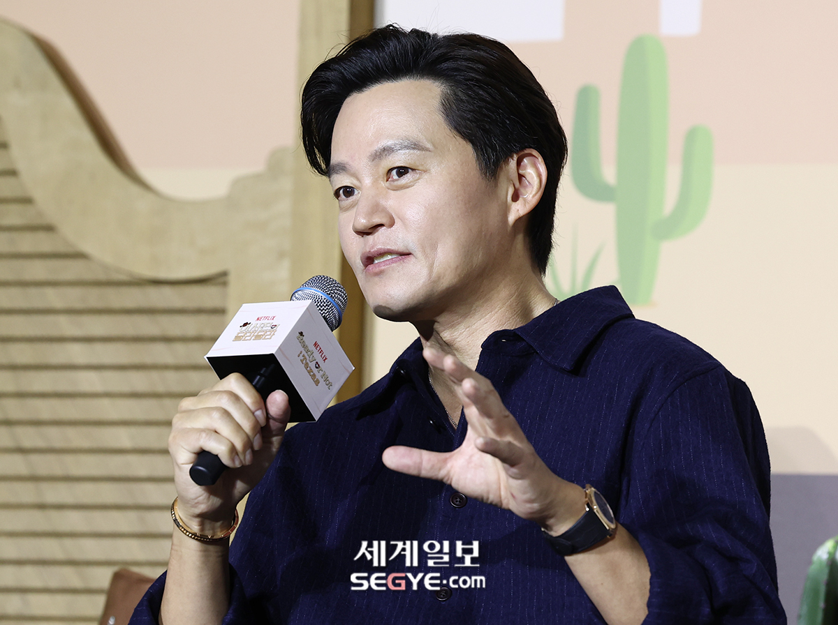 배우 이서진이 24일 오전 서울 CGV 용산아이파크몰에서 열린 넷플릭스 예능 '이서진의 달라달라' 제작발표회에 참석해 인사말을 하고 있다.